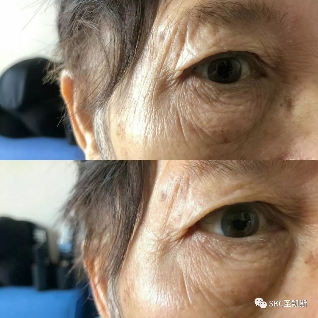 (同事72岁老妈妈,涂抹一分钟祛表情纹紧致眼霜后对比图)